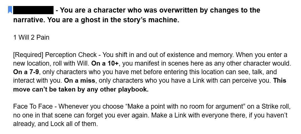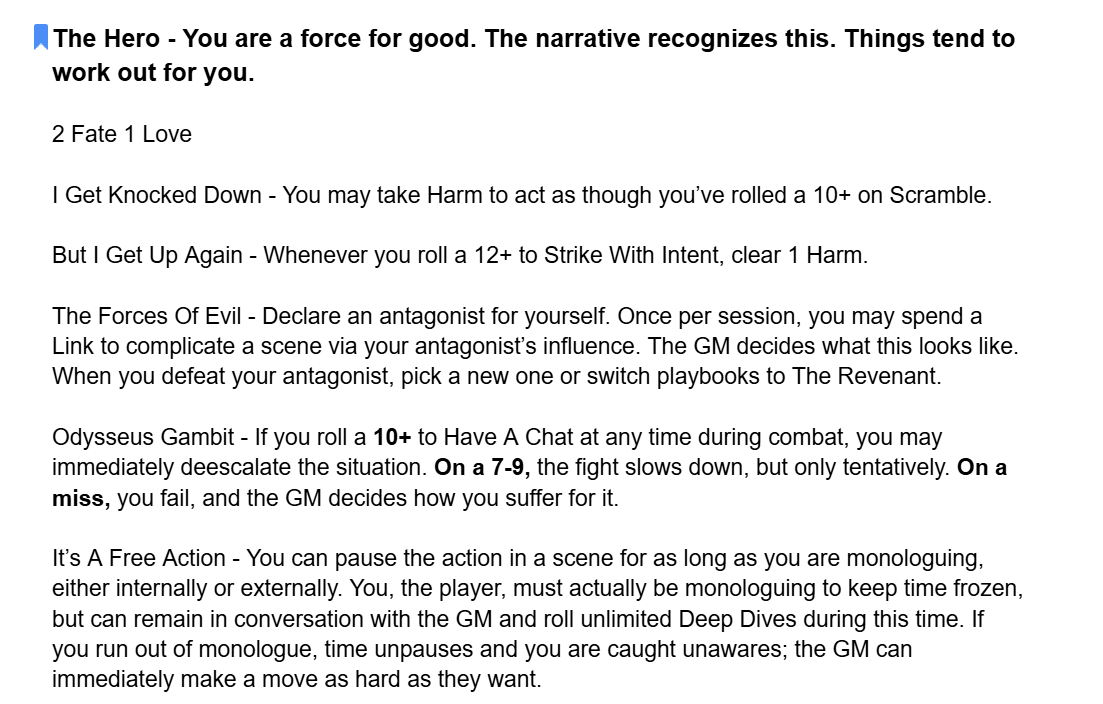 I'm about to play a oneshot of this because of MK and I need you to know you are the funniest motherfucker ever invented. The pregame notes are hysterical, topical, and very readable. The gameplay is easy to follow, the playbooks themselves are attacks very personally on me and the people I know, and this game is about to become my new hyperfixation for the next couple months. XDD